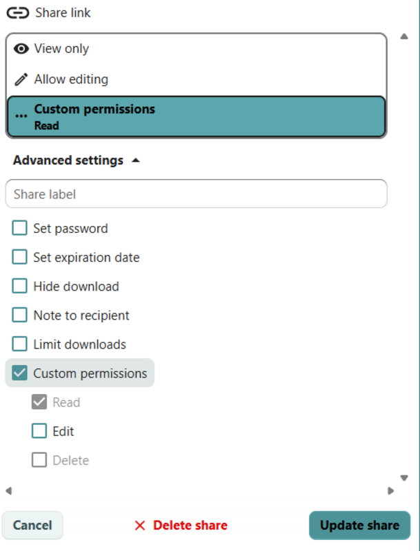 - Integrated Sharing: Once a team is created, it appears in the sharing menu of Files, Deck, and Talk.