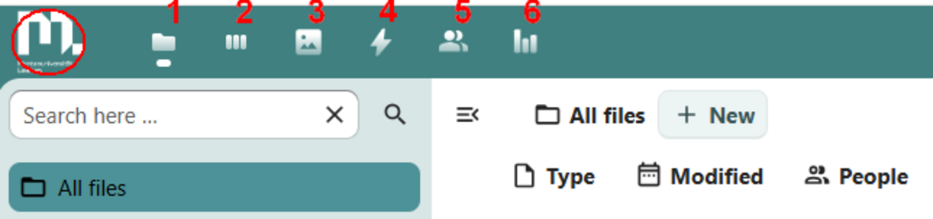 To add content to your MULcloud, click the plus (+) icon in the center of the top navigation bar. You can choose from the following options: