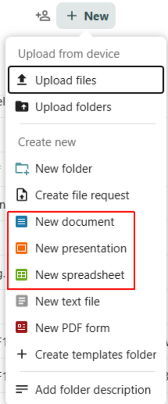 - New File/Folder: Create a new folder or a plain text file directly within the cloud.