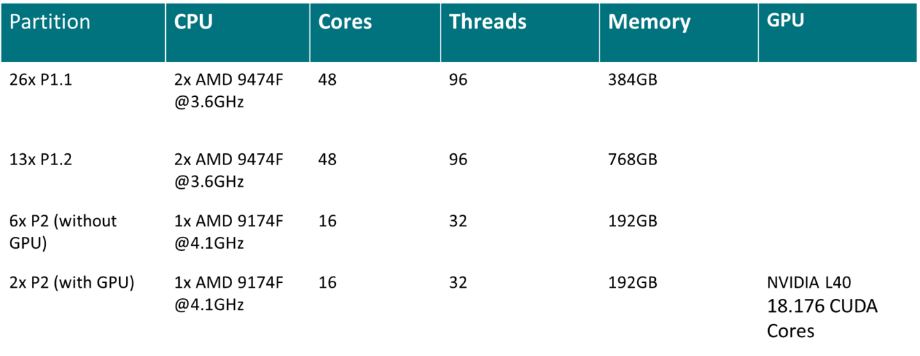 Mit 46 Rechenknoten, 3.872 Cores und 21,5 TB RAM bietet er leistungsstarke Ressourcen für anspruchsvolle Forschungsprojekte, ohne dass zusätzliche Kosten entstehen.
